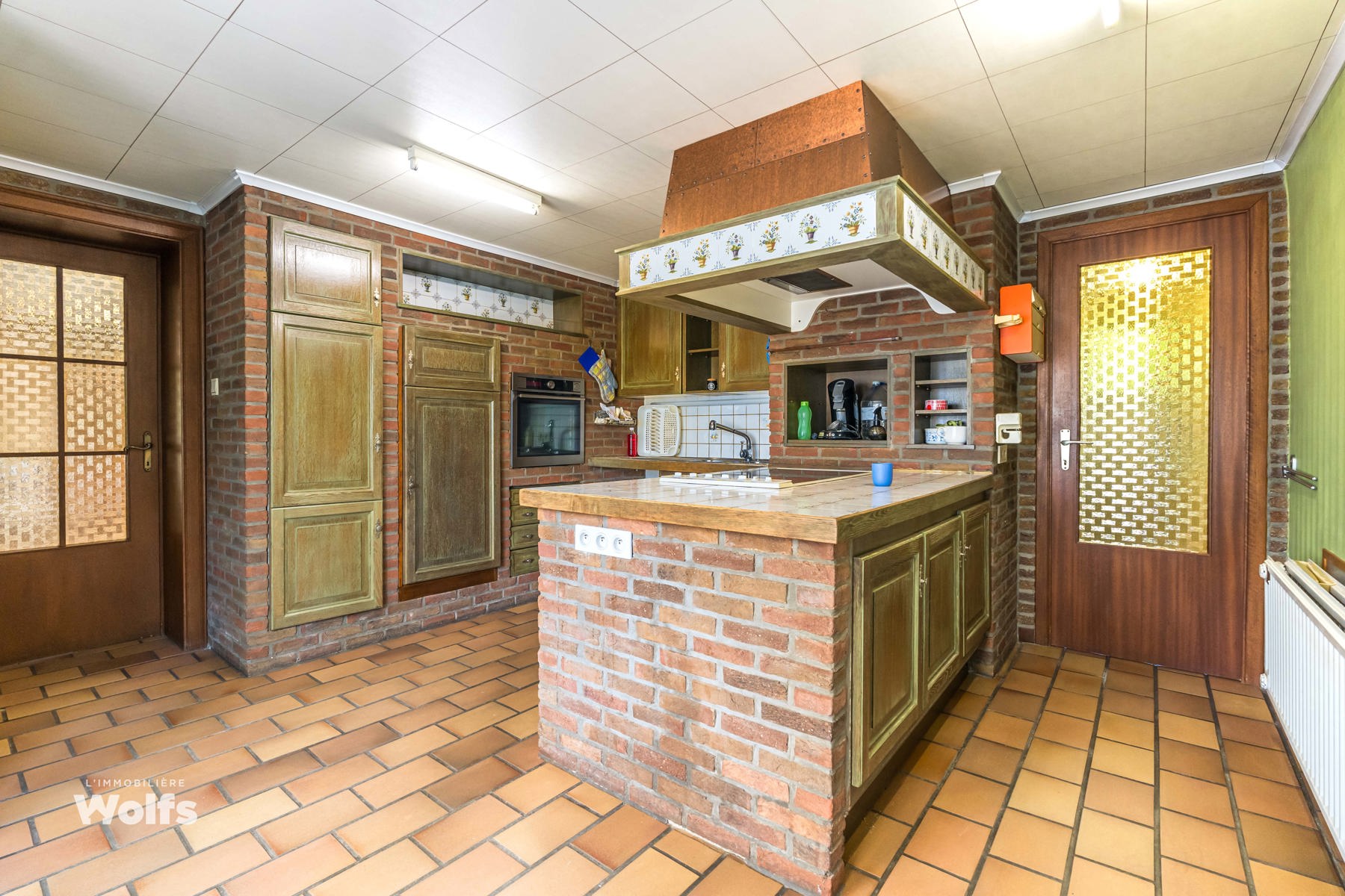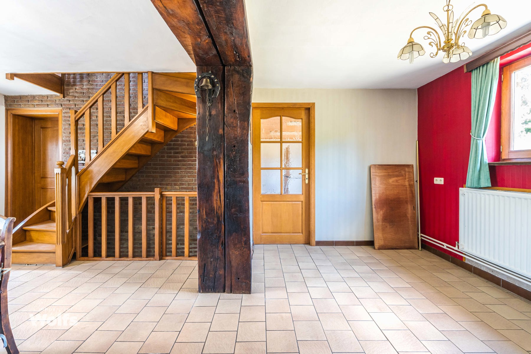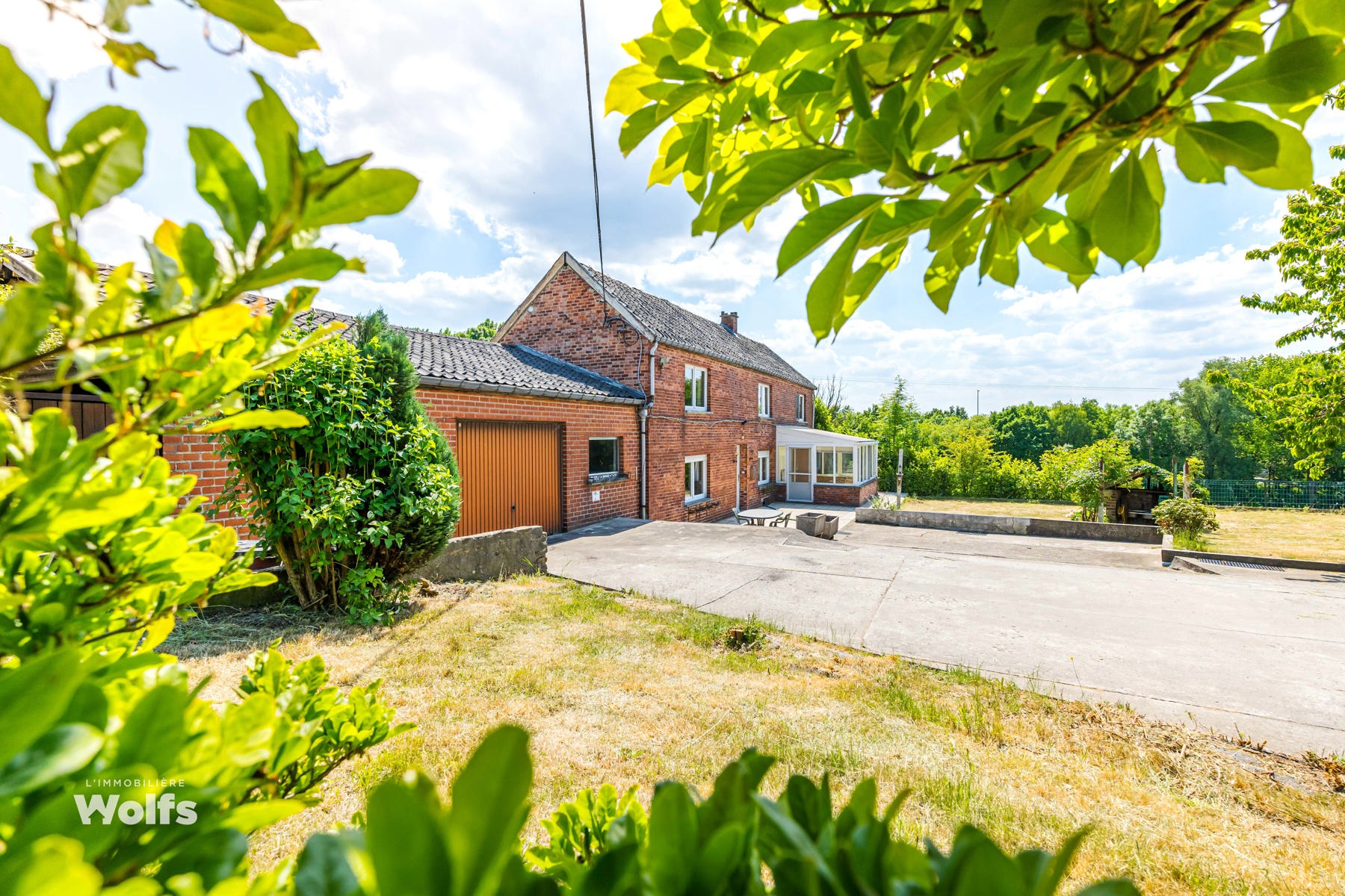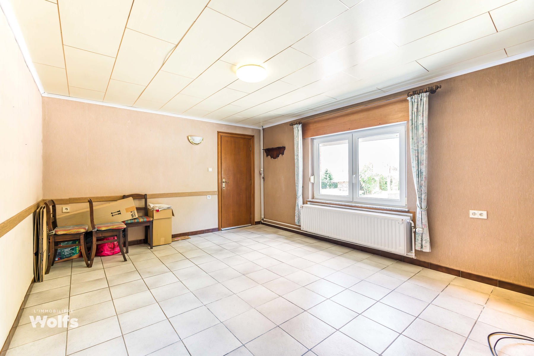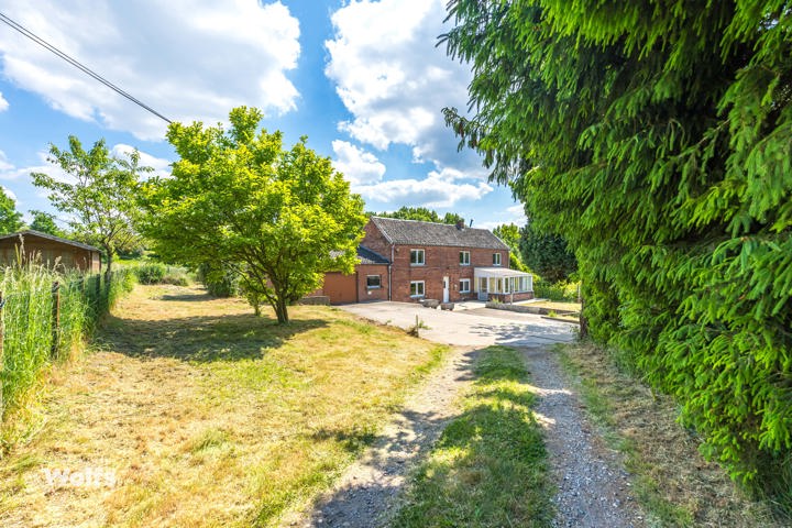 Begane grond : woonkamer, eetkamer, ingerichte keuken, serre, bijkeuken, apart toilet, doucheruimte (douche, wastafel), een slaapkamer, stookruimte, garage, terras, tuin, aangrenzend weiland, parkeerplaats.