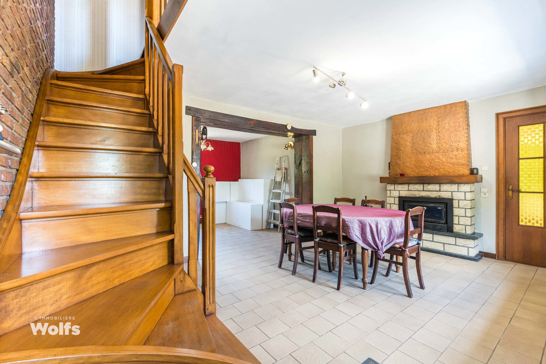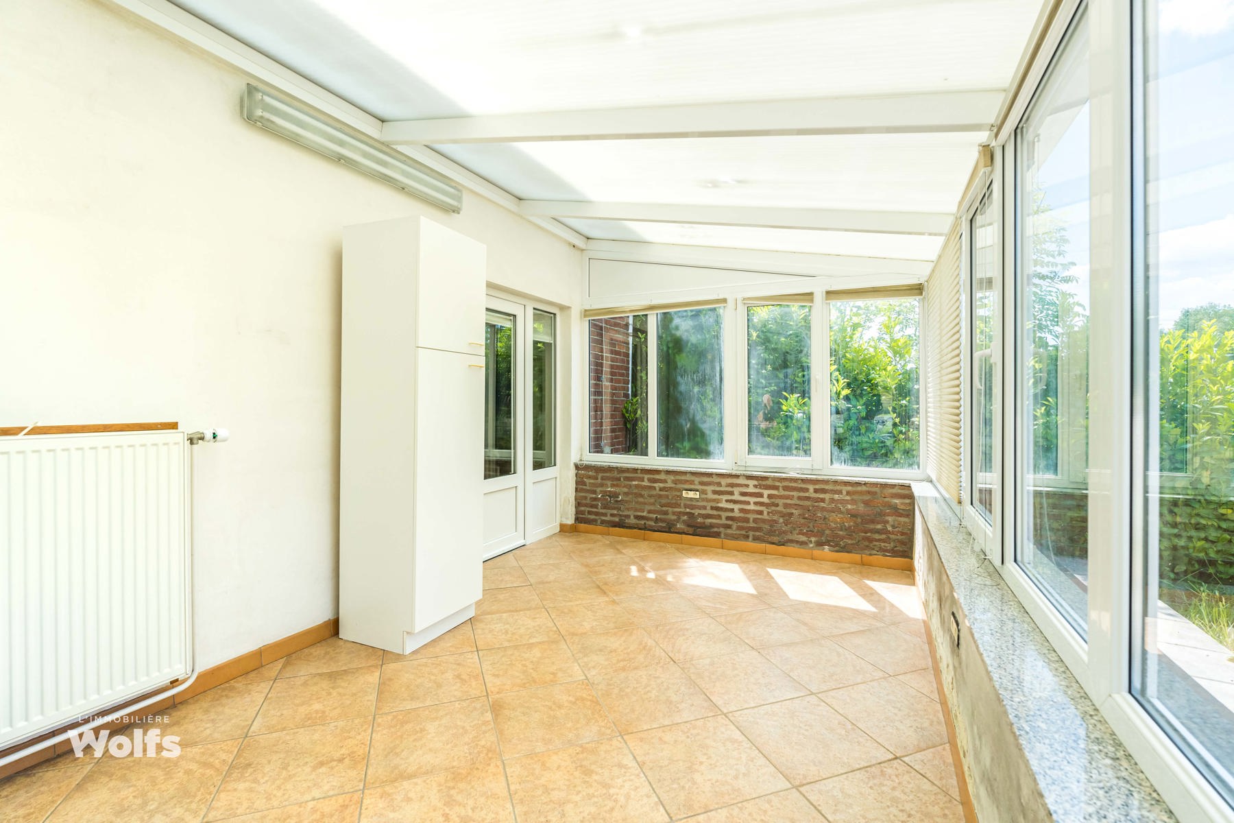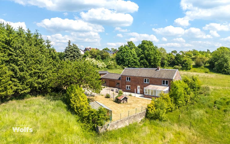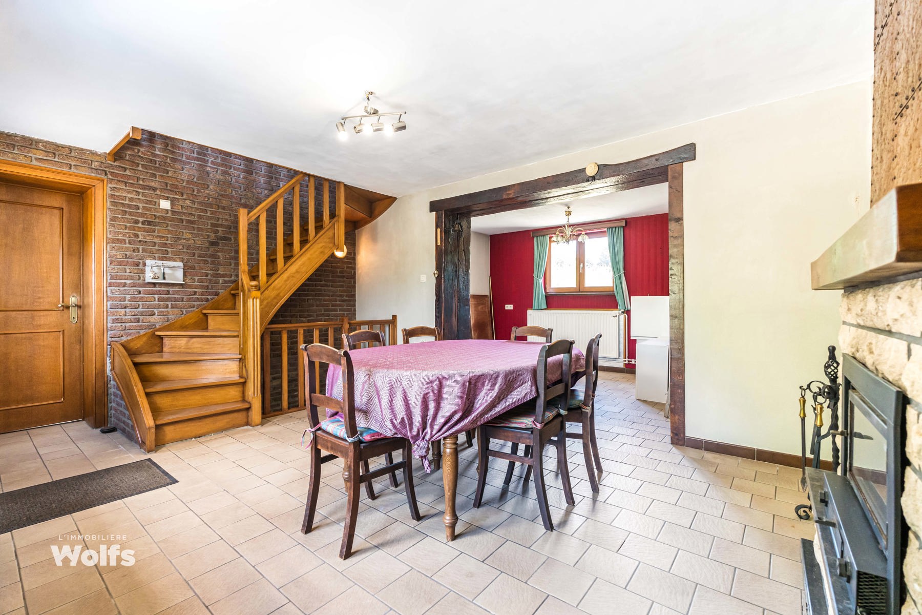 Begane grond : woonkamer, eetkamer, ingerichte keuken, serre, bijkeuken, apart toilet, doucheruimte (douche, wastafel), een slaapkamer, stookruimte, garage, terras, tuin, aangrenzend weiland, parkeerplaats.