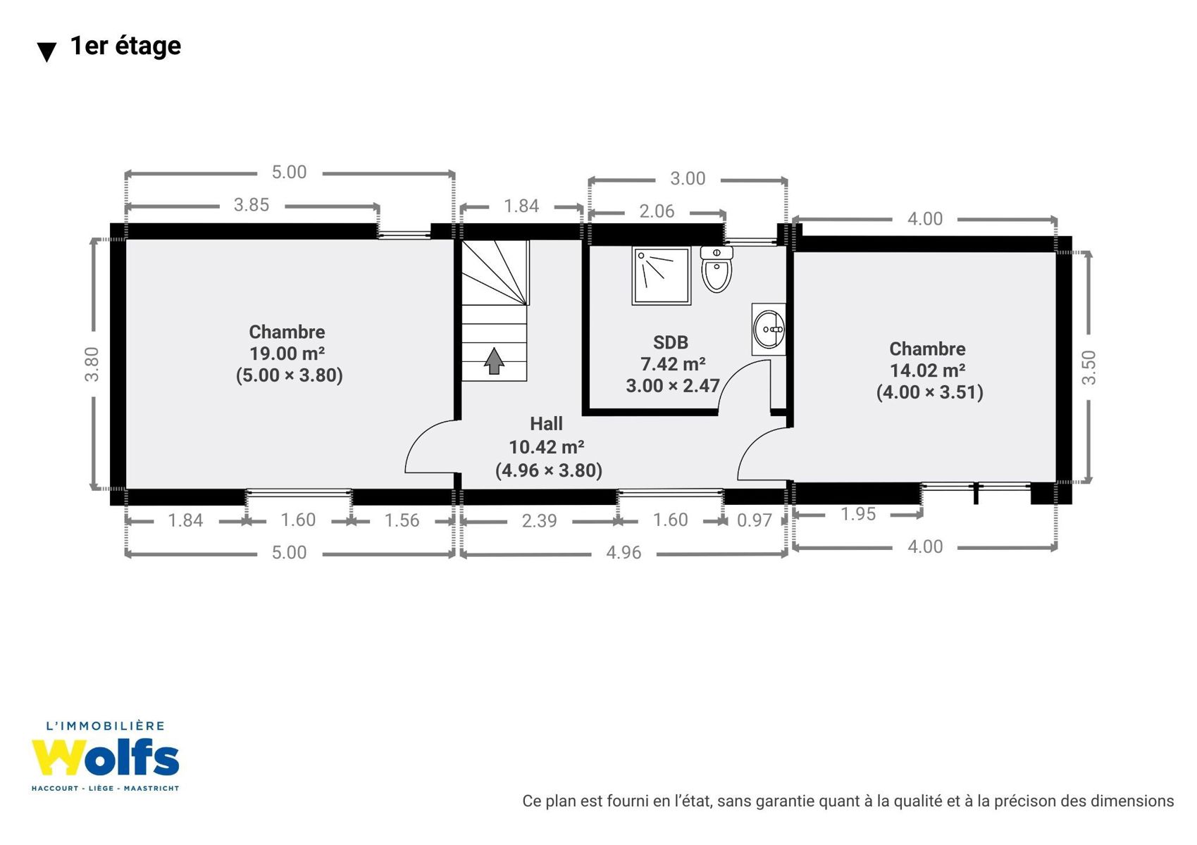1ste verdieping : nachthal, doucheruimte (douche, wastafel, toilet), twee slaapkamers.