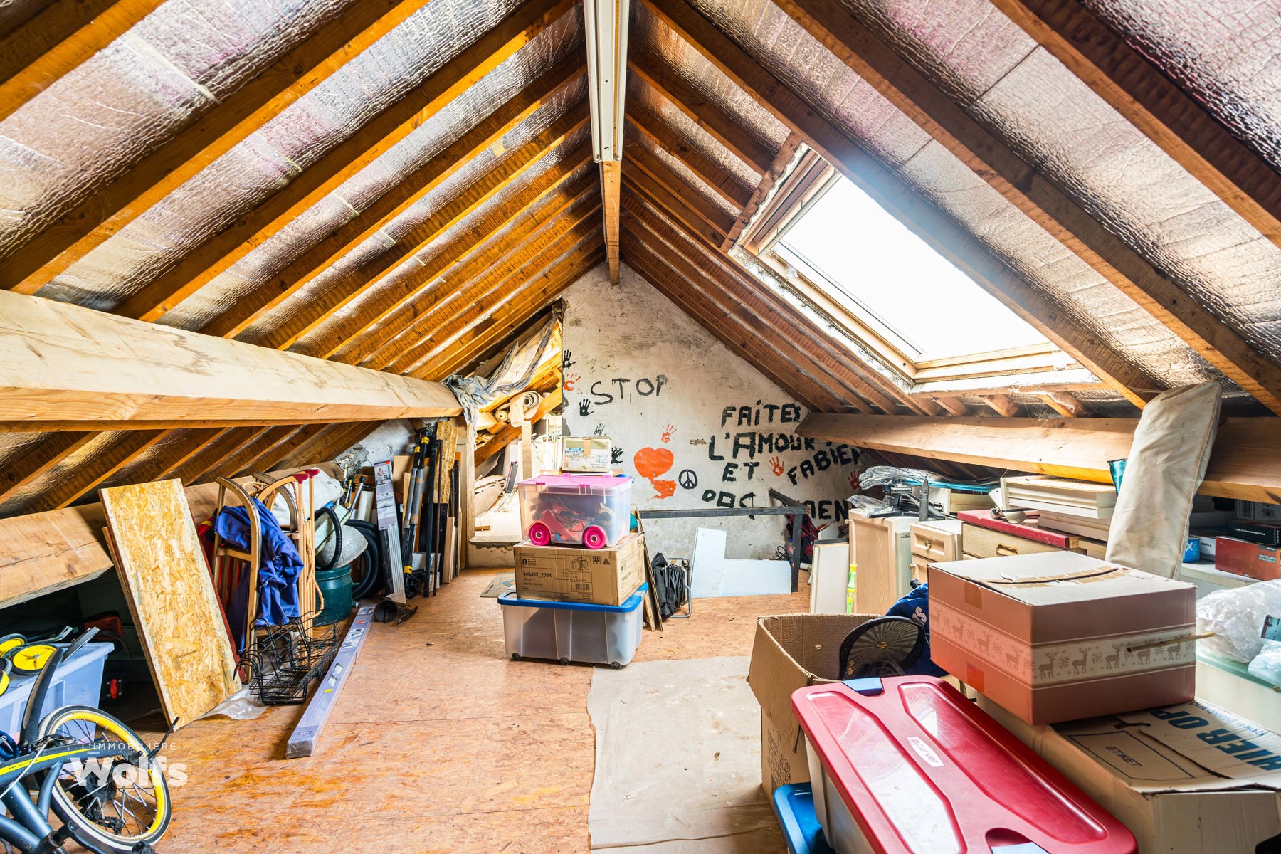 Zolder : twee inrichtbare zolders van +/- 24 en 32 m² (isolatie aanwezig).