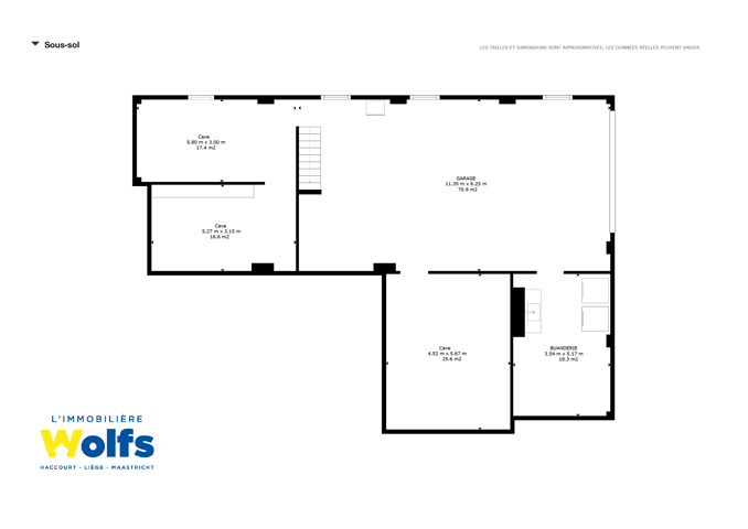 Sous-sol : caves de rangement, grand garage, trois garages loués.