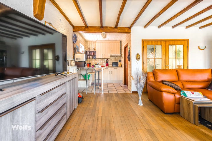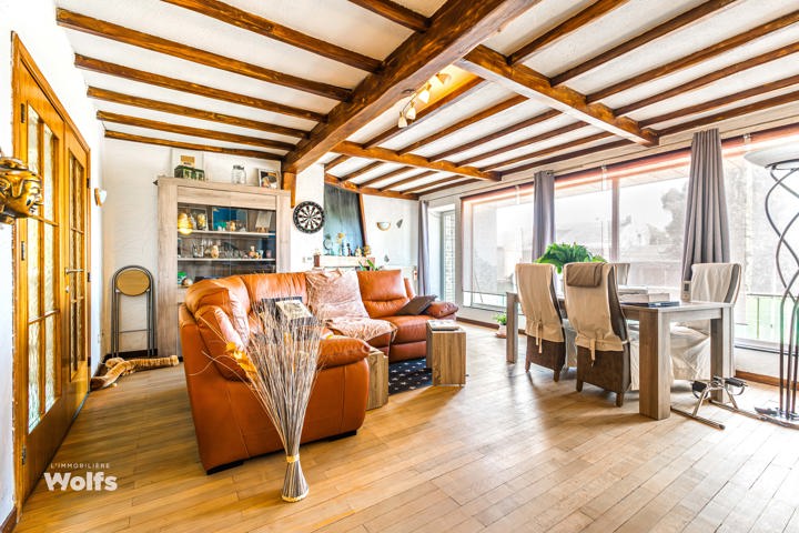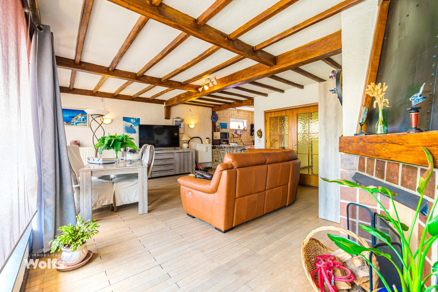 Idéalement située à proximité des axes autoroutiers et de toutes les commodités, l’Immobilière Wolfs a le plaisir de vous présenter ce bien offrant la possibilité d’allier vie privée et activité professionnelle. Cette maison séduit par ses grands espaces et sa multitude de possibilités. Bénéficierez notamment d’un garage de plus de 80 m², idéal pour stationner plusieurs véhicules, aménager un atelier ou disposer d’un vaste espace de rangement. Le bien comprend également un logement de plain-pied (deux chambres + chambre bébé) avec entrée indépendante, offrant un confort optimal et une flexibilité d’utilisation.