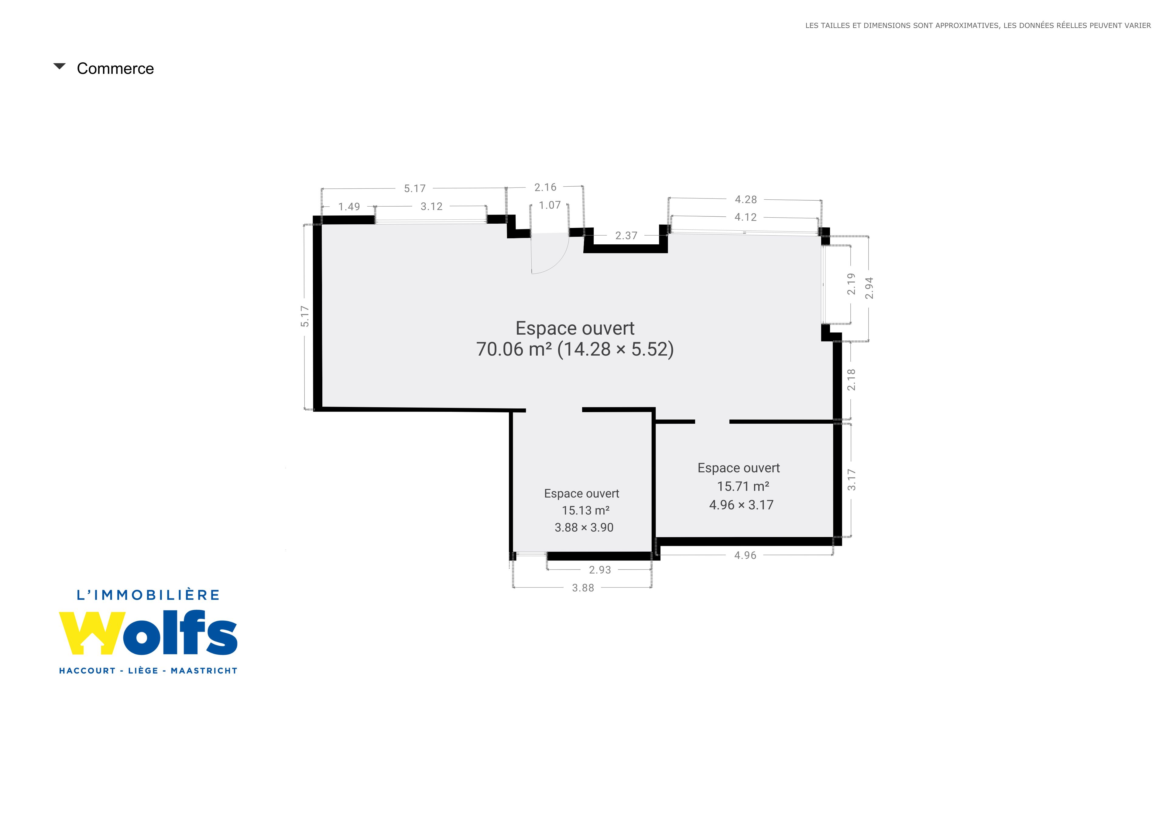 Rez-de-chaussée : spacieuse et lumineuse pièce ouverte de +/- 70 m² avec deux larges vitrines, deux bureaux de +/- 15 m² offrant plusieurs possibilités d'aménagement.