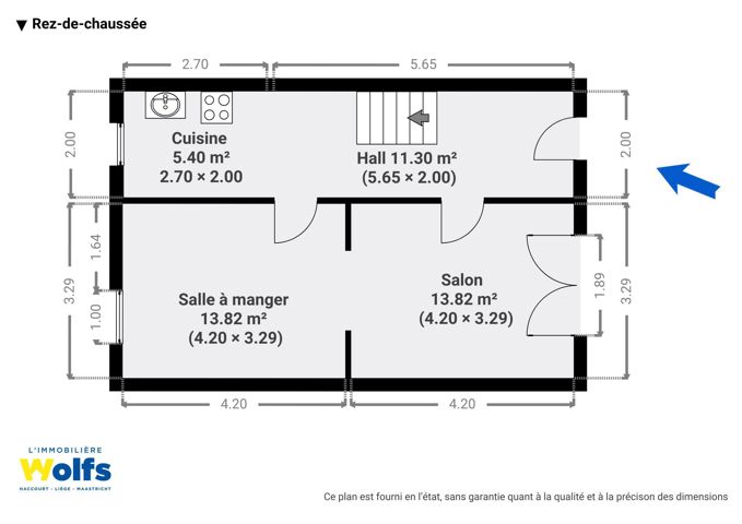 Begane grond : inkomhal, +/- 28 m² woonkamer, ingerichte keuken, prachtige siertuin, parkeerplaats.