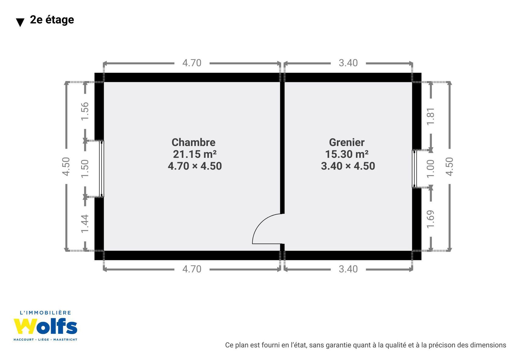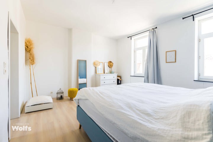 2e verdieping : slaapkamer en zolder die kan worden ingericht als kleedkamer.