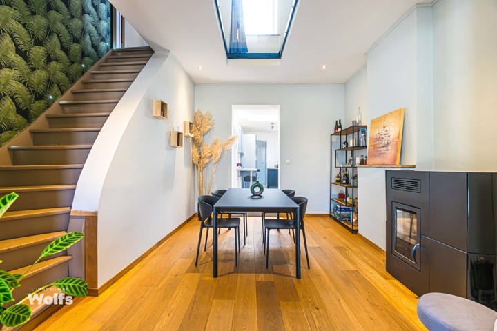 Diversen : totale oppervlakte: 150 m², bewoonbare oppervlakte +/- 145 m², dubbele beglazing in PVC, elektriciteit conform tot 2041, K.I.: 575 €, fotovoltaïsche panelen, elektrische verwarming met accumulatie, pelletkachel.
