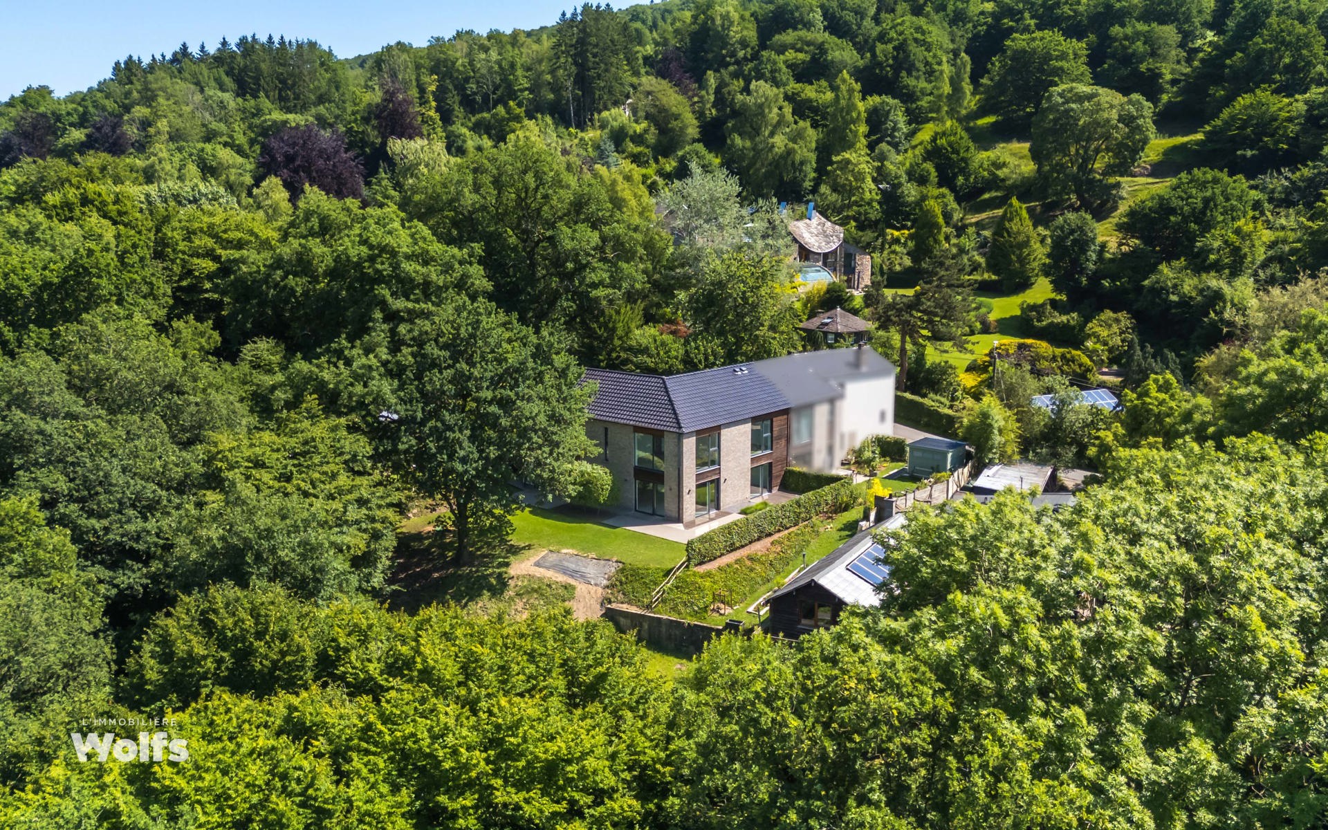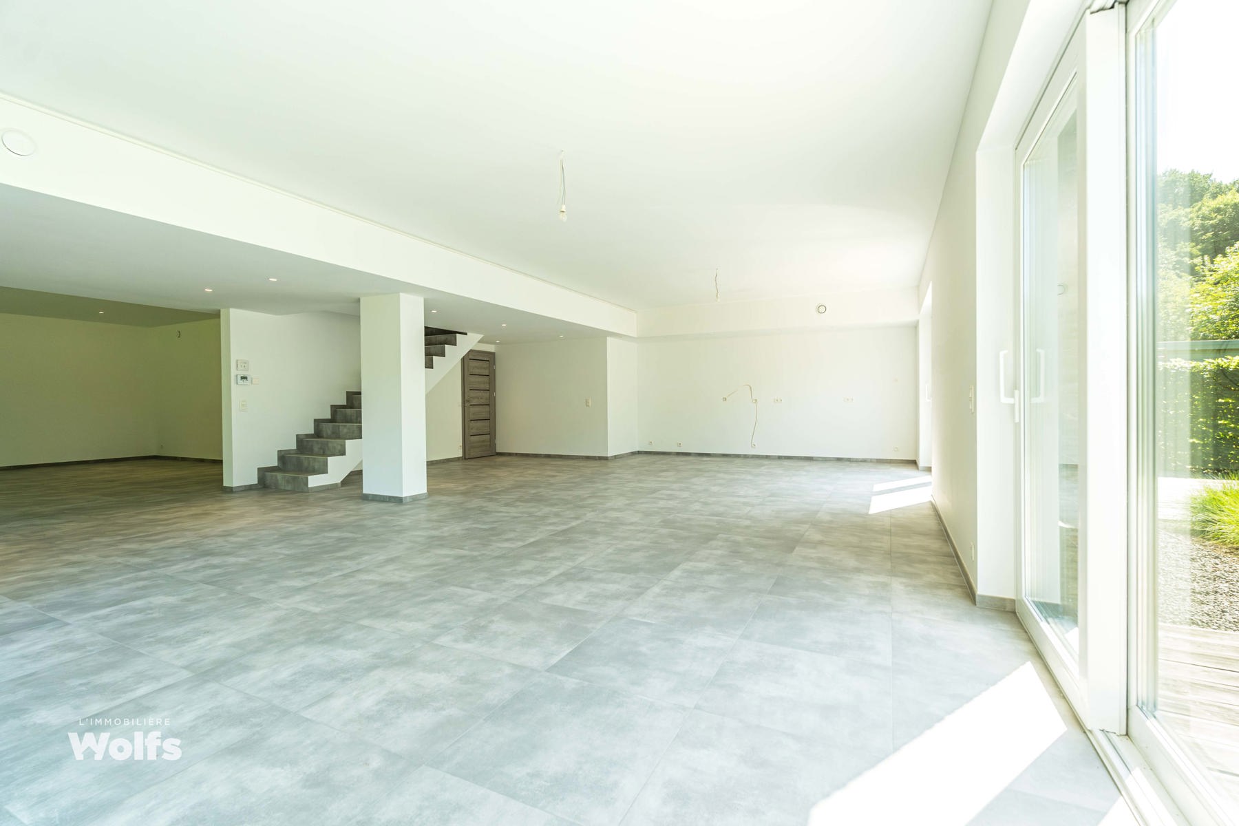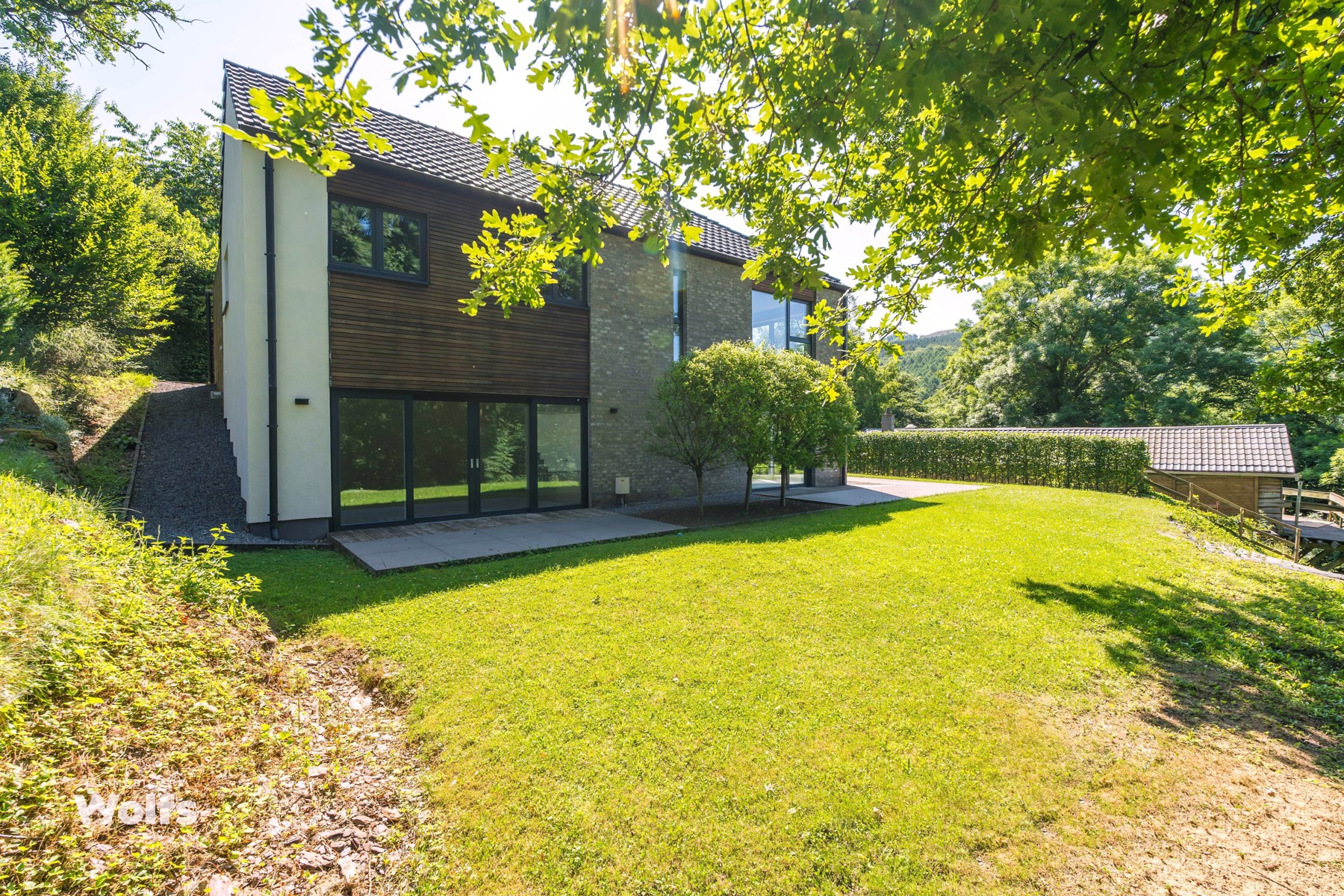 Makelaardij Wolfs heeft het genoegen u deze prachtige hedendaagse villa met tuin voor te stellen, ideaal gelegen in de gemeente Aywaille in Quarreux. Deze nieuwbouwvilla, met hoogwaardige materialen en afwerkingen, biedt een comfortabele leefruimte verspreid over 285 m² woonoppervlakte, uitstekende energieprestaties met een EPB-rating van klasse A en een uitstekende ligging in een waar juwelenkistje van groen aan het begin van een groot aantal prachtige wandelingen. Tegelijkertijd geniet je van de onmiddellijke nabijheid van alle voorzieningen die je nodig hebt, met toegang tot het centrum van Aywaille in slechts een paar minuten !