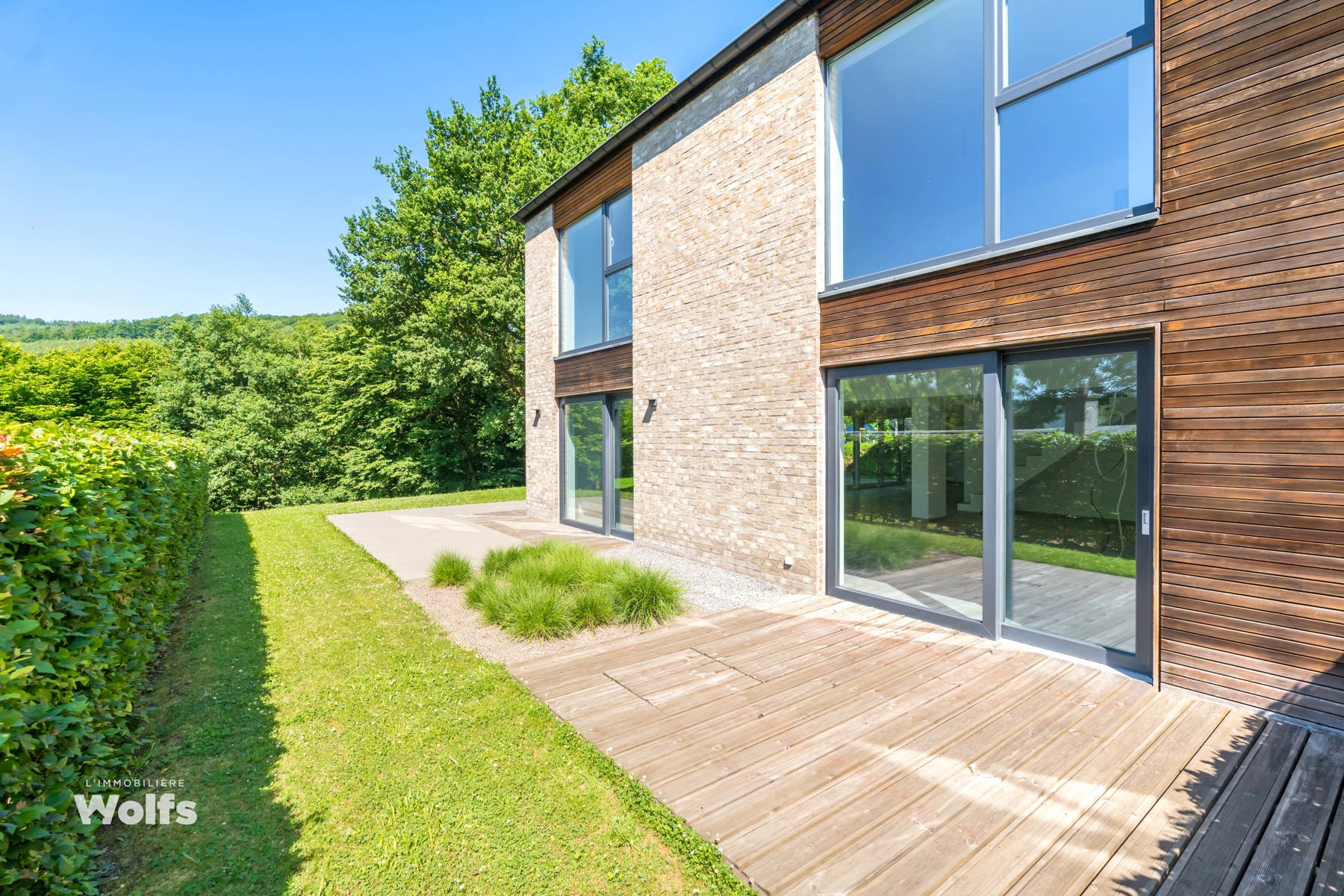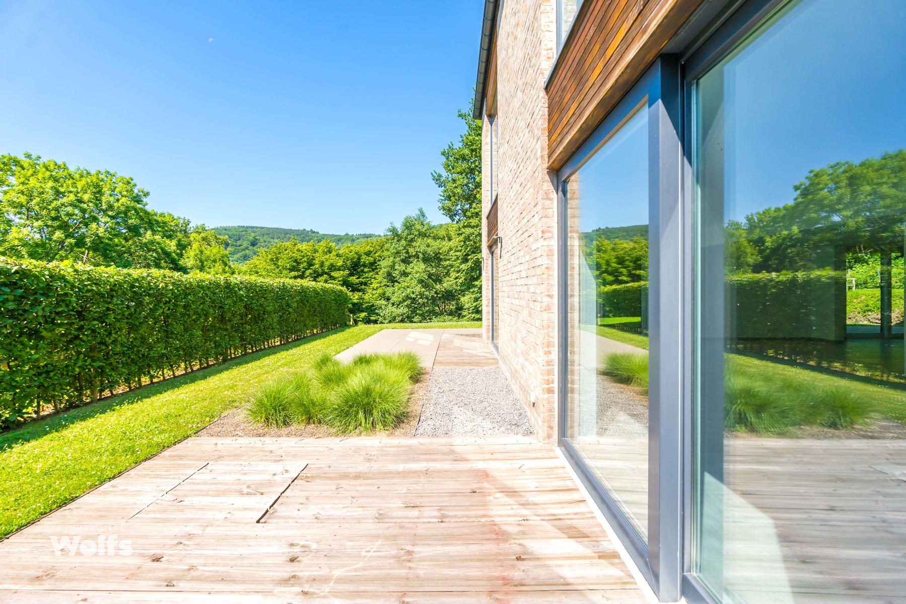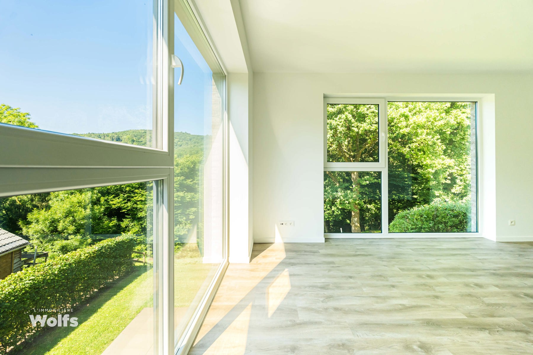 Makelaardij Wolfs heeft het genoegen u deze prachtige hedendaagse villa met tuin voor te stellen, ideaal gelegen in de gemeente Aywaille in Quarreux. Deze nieuwbouwvilla, met hoogwaardige materialen en afwerkingen, biedt een comfortabele leefruimte verspreid over 285 m² woonoppervlakte, uitstekende energieprestaties met een EPB-rating van klasse A en een uitstekende ligging in een waar juwelenkistje van groen aan het begin van een groot aantal prachtige wandelingen. Tegelijkertijd geniet je van de onmiddellijke nabijheid van alle voorzieningen die je nodig hebt, met toegang tot het centrum van Aywaille in slechts een paar minuten !
