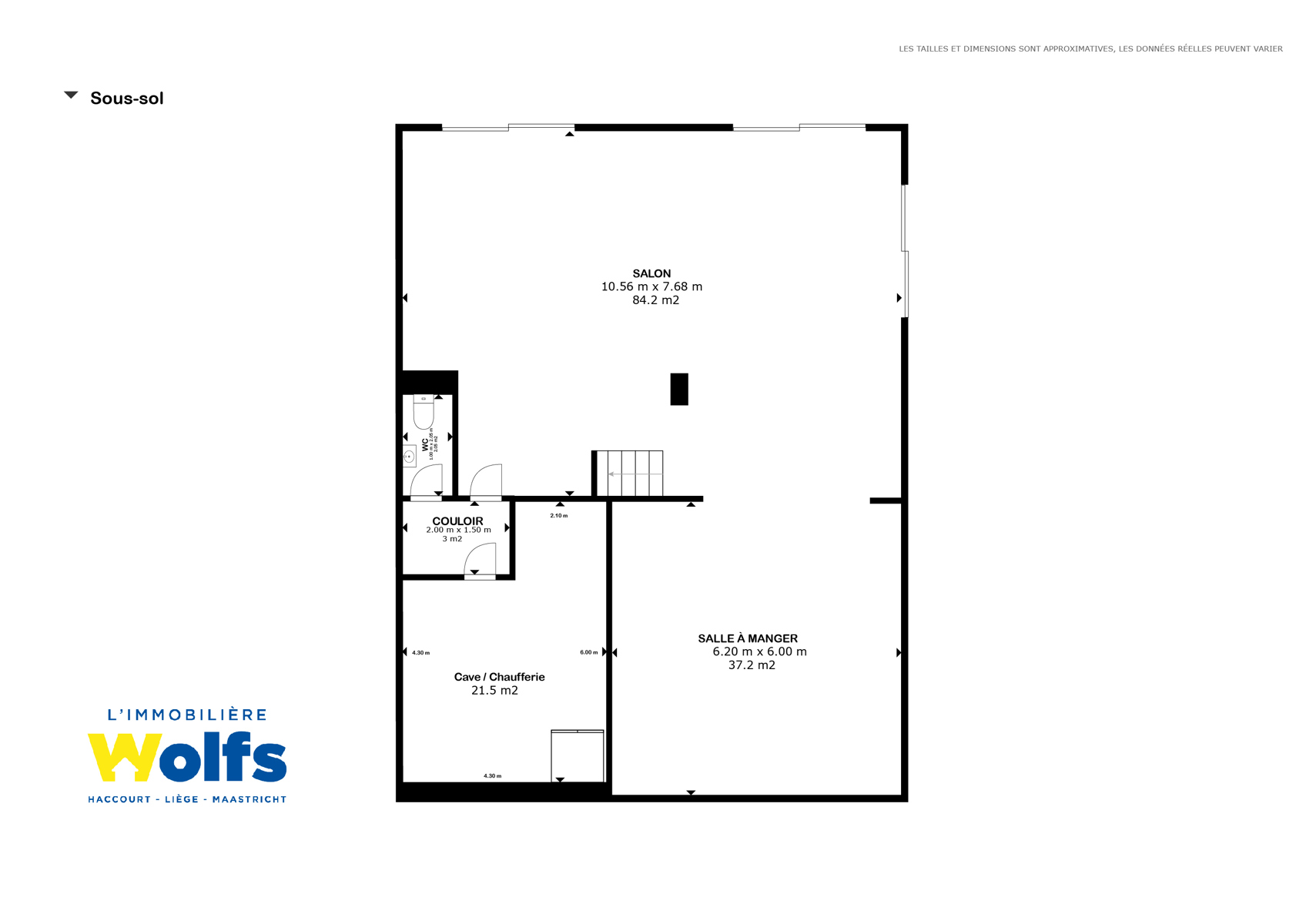 Tuinniveau : ruime woonkamer (salon, eetkamer) met open keuken (keuken te installeren door de koper), apart toilet, kelder, stookruimte met wasruimte, aangename terrassen rondom het woongedeelte, prachtige tuin met bomen.