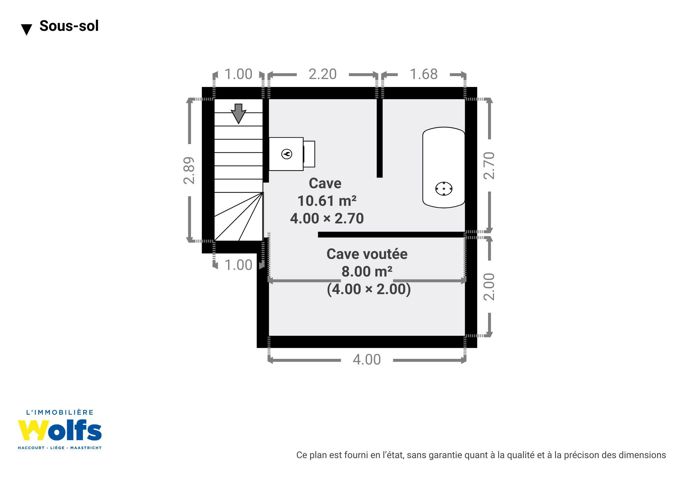 Kelderverdieping : twee kelders met stookruimte.
