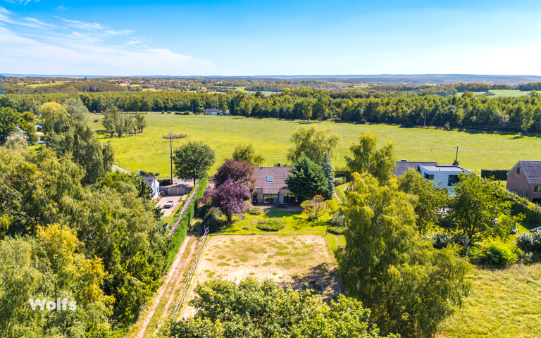 Makelaardij Wolfs presenteert u met veel plezier deze aangename villa met garage, tuin en paardenfaciliteiten, gelegen op een prachtig perceel van 8.546 m² aan de rand van het bos. Deze woning ligt in een groene omgeving op de heuvels van Gomzé-Andoumont en is een echte aanrader voor liefhebbers van rust en natuur. Het pand ligt vlak bij de snelweg A25 Luik-Luxemburg, waardoor u gemakkelijk kunt profiteren van alle voorzieningen van de steden Beaufays en Louveigné. U zult genieten van het huis en zijn comfortabele leefruimtes, de 8 paardenboxen in perfecte staat, de manege en de aangrenzende weiden. Mogelijkheid om extra weiden te huren.