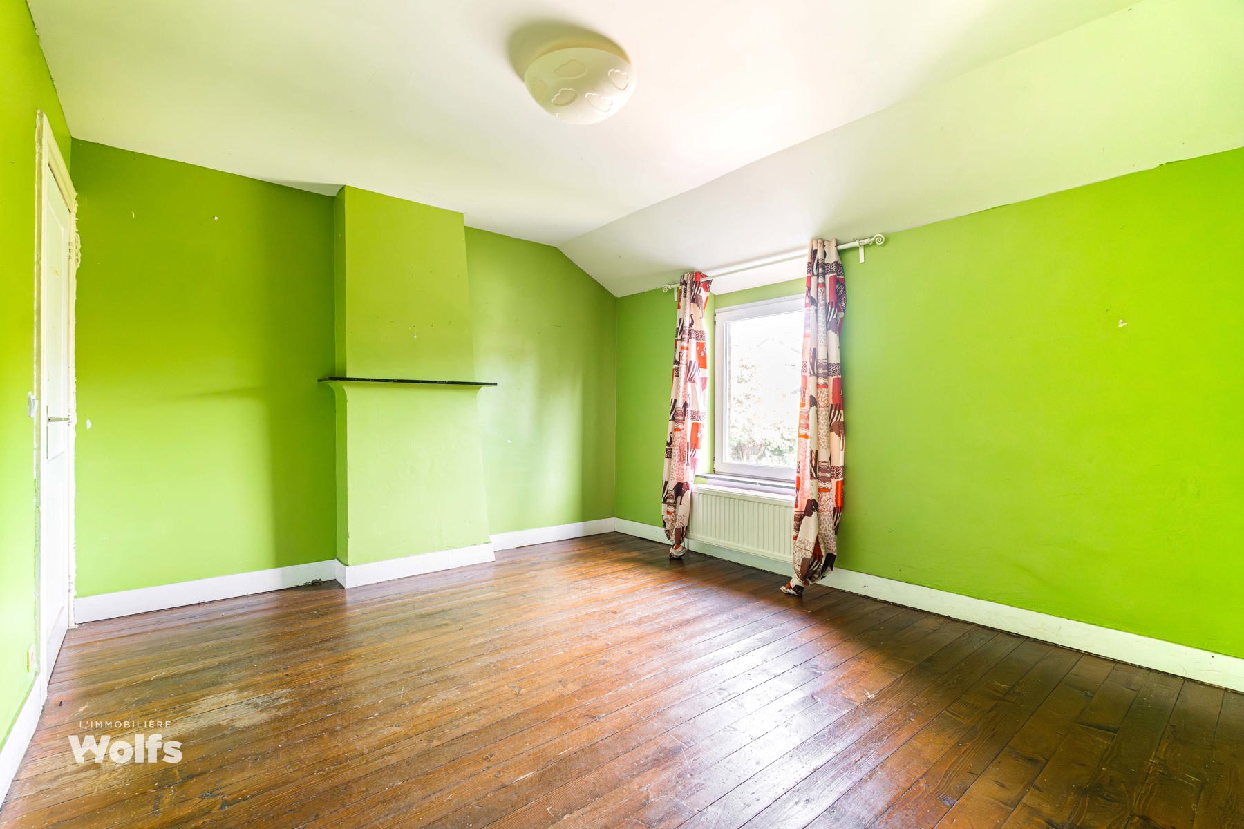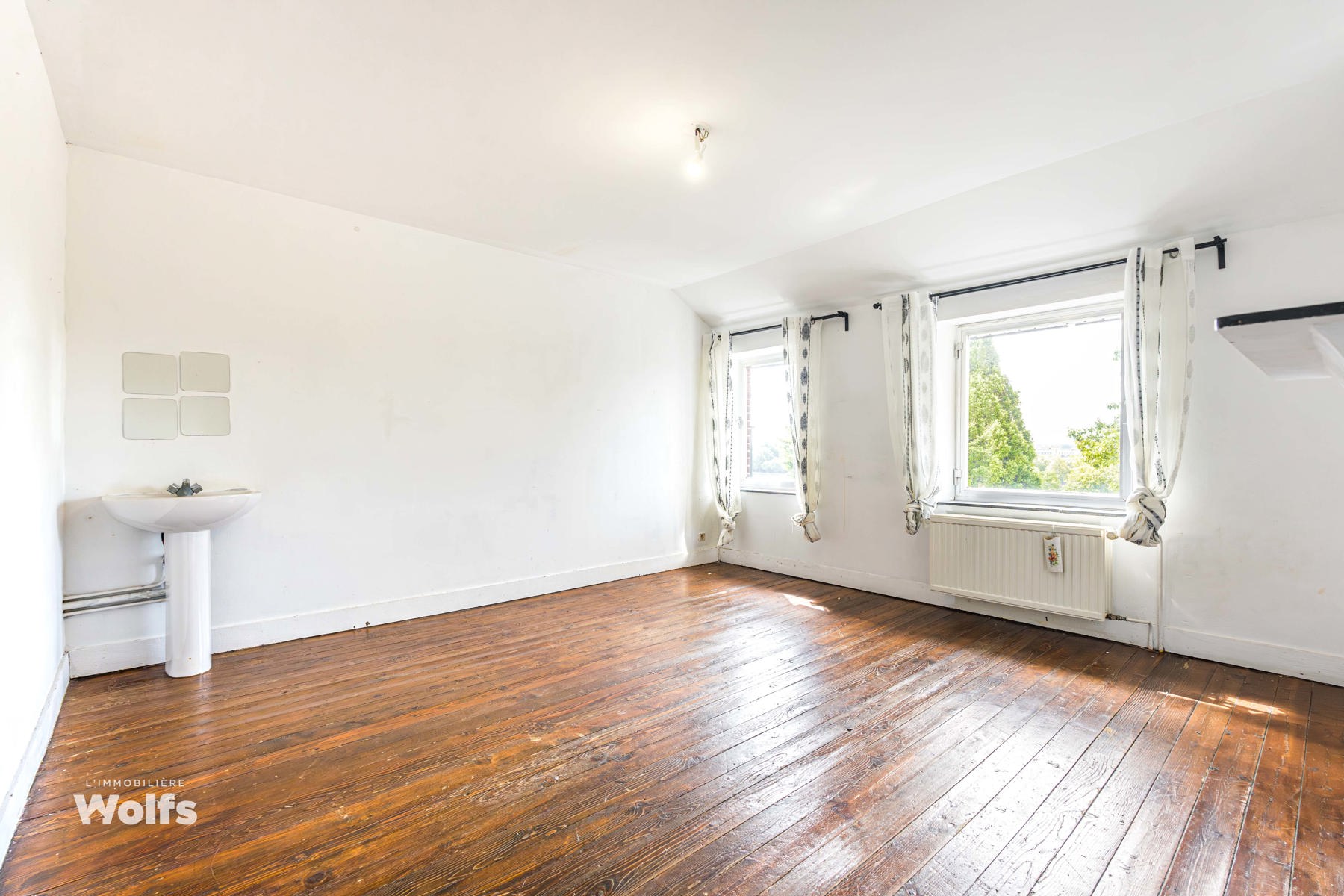 2e verdieping : twee grote slaapkamers van +/- 16 en 19 m², waarvan één met een wastafel, apart toilet.