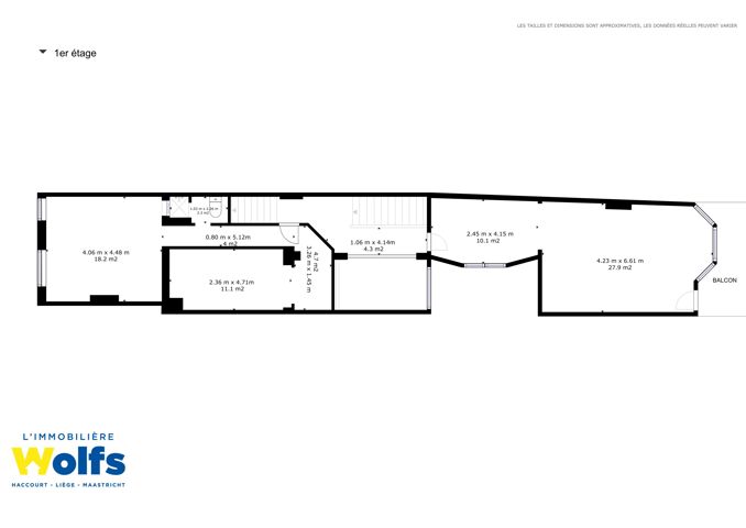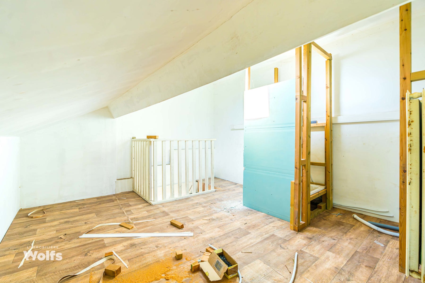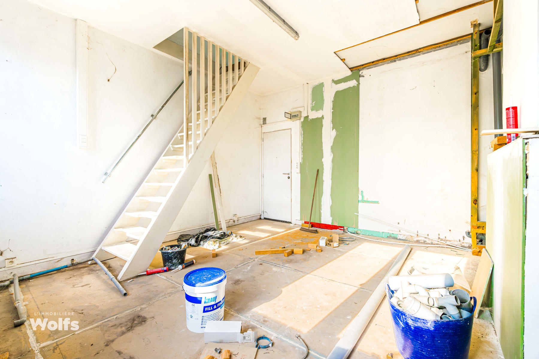 1e verdieping : oppervlakte van +/- 78 m² te herinrichten volgens project, terras aan de achterzijde.