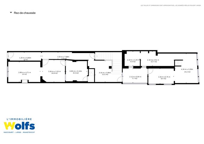 Gelijkvloers : oppervlakte van +/- 110 m² te herinrichten volgens project.