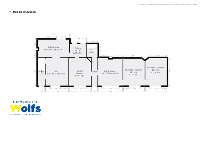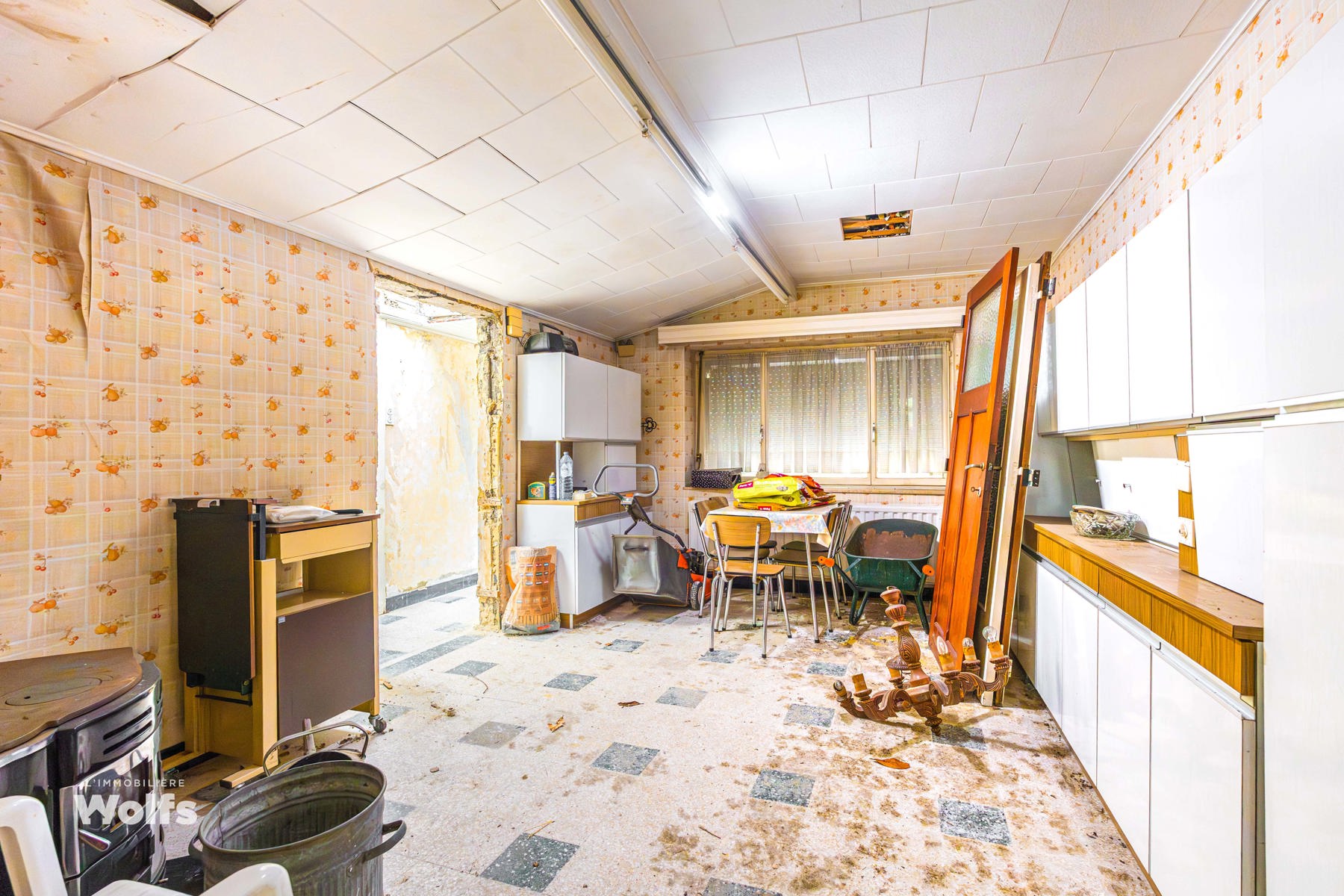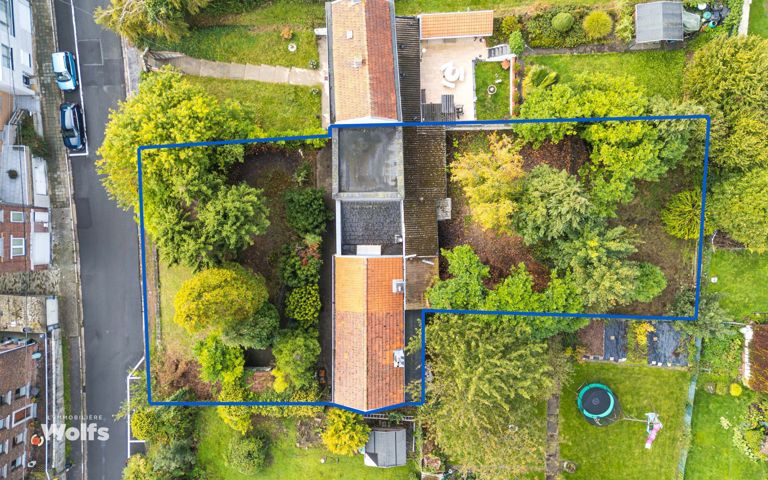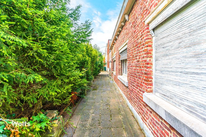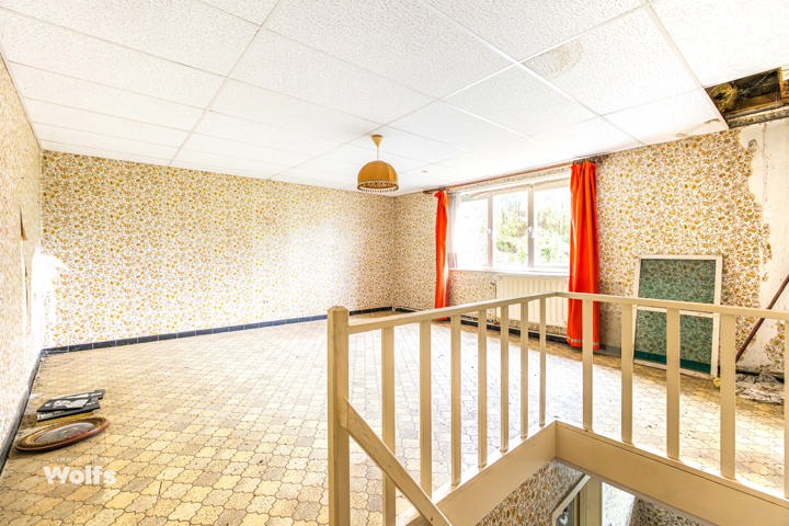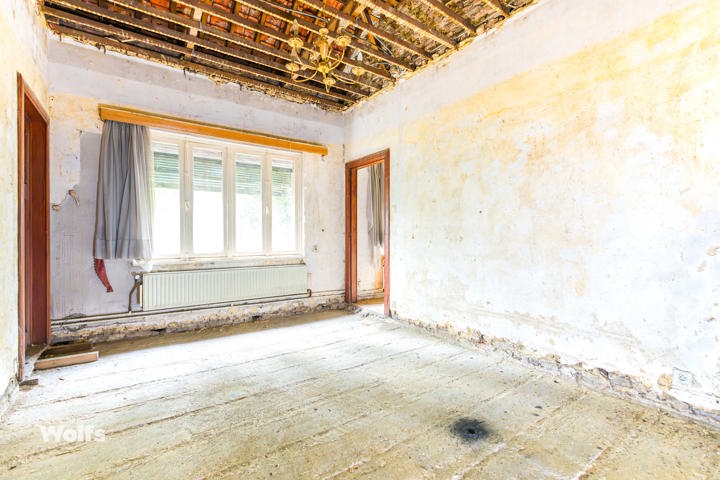 Gelijkvloers : inkomhal, woonkamer van +/- 19 m², eetkamer van +/- 17 m², keukenruimte van +/- 18 m², bijkeuken/wasruimte van +/- 7 m² met toegang naar buiten, badkamer (toilet, bad, wastafel), drie ruime slaapkamers van +/- 17, 18 en +/- 20 m² in elkaars verlengde (mogelijkheid om ze onafhankelijk te maken door een nachthal te creëren), terras en grote intieme tuin.