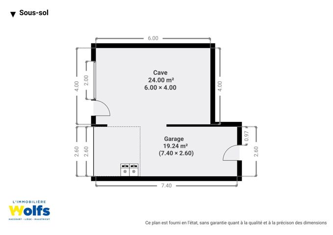 Kelder : kelder van +/- 24 m², garage van +/- 19 m².