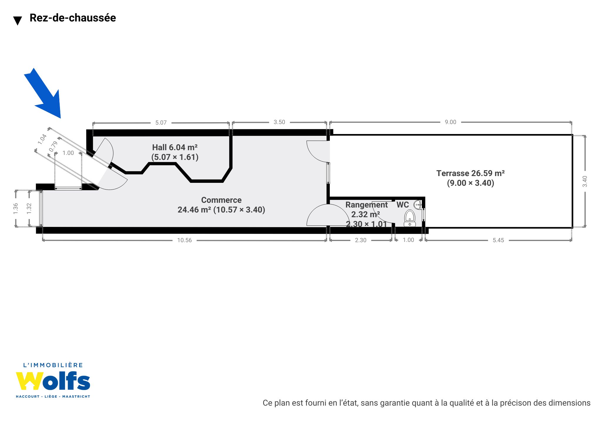 Commerciële oppervlakte van +/- 30 m² met winkel, opslagruimte en apart toilet, aangenaam terras.
